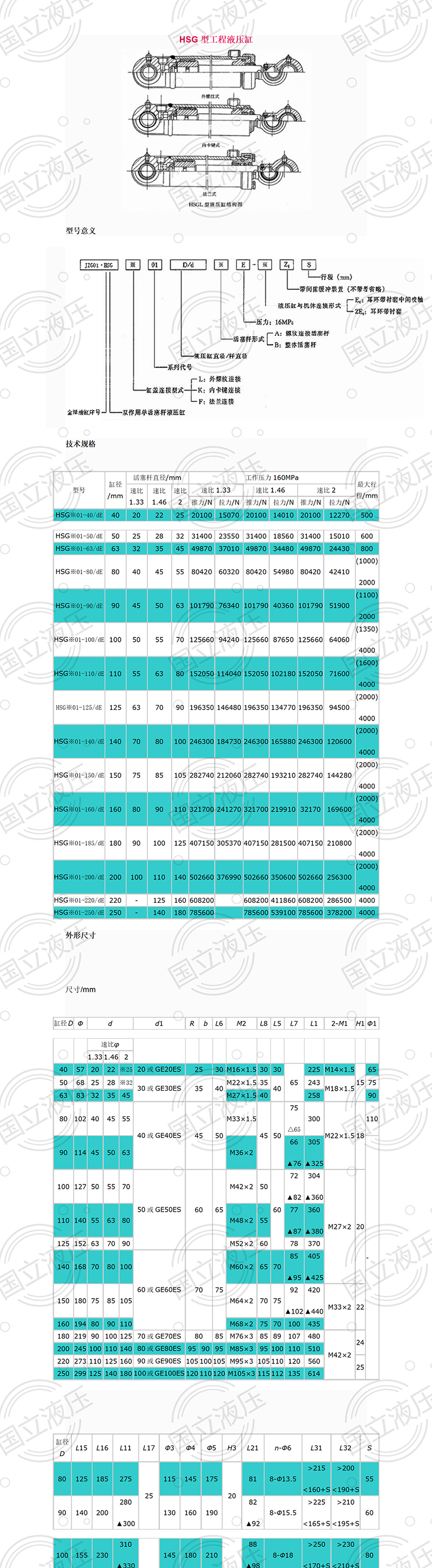 國立液壓HSG工(gōng)程型液壓缸型号(hào)參考